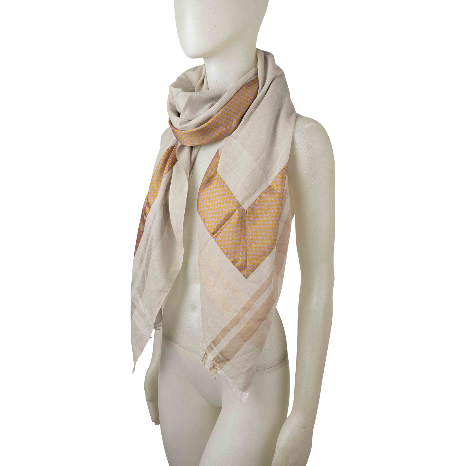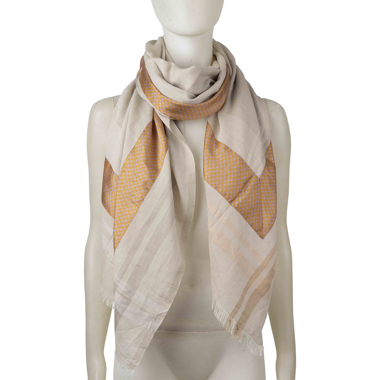 Original RUBICON Damentuch mit Seidendruck auf einem Baumwolltuch eingewebten Seitenstreifen