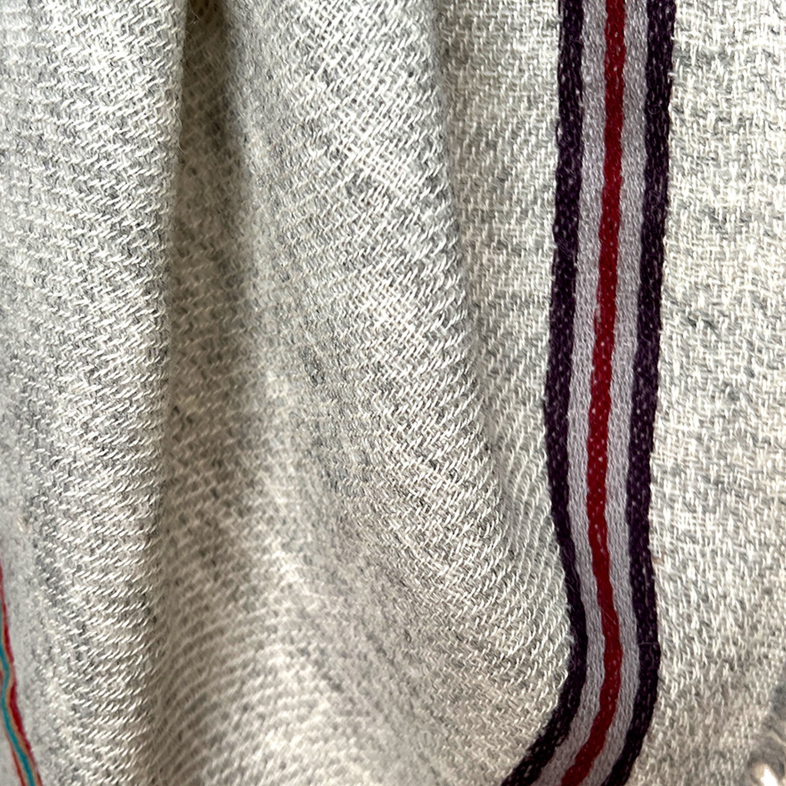 Original-Rubicon Tuch mit eingewebten Steifenrand . Die Wolle ist leicht gewaschen, ein leichter Filzcharakter ist gewollt und gibt dem Schal einen kuscheligen Handgriff,