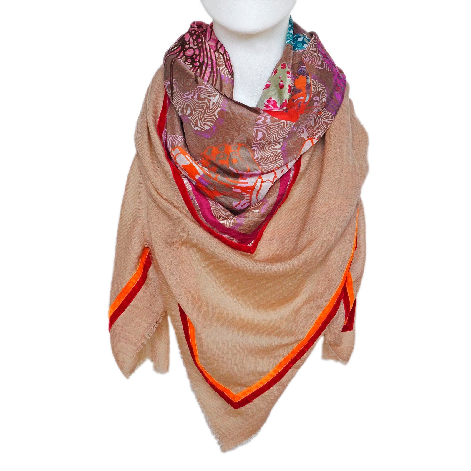 - Größe ca. 140x140 Wolltuch, 100x100 cm Seidendruck