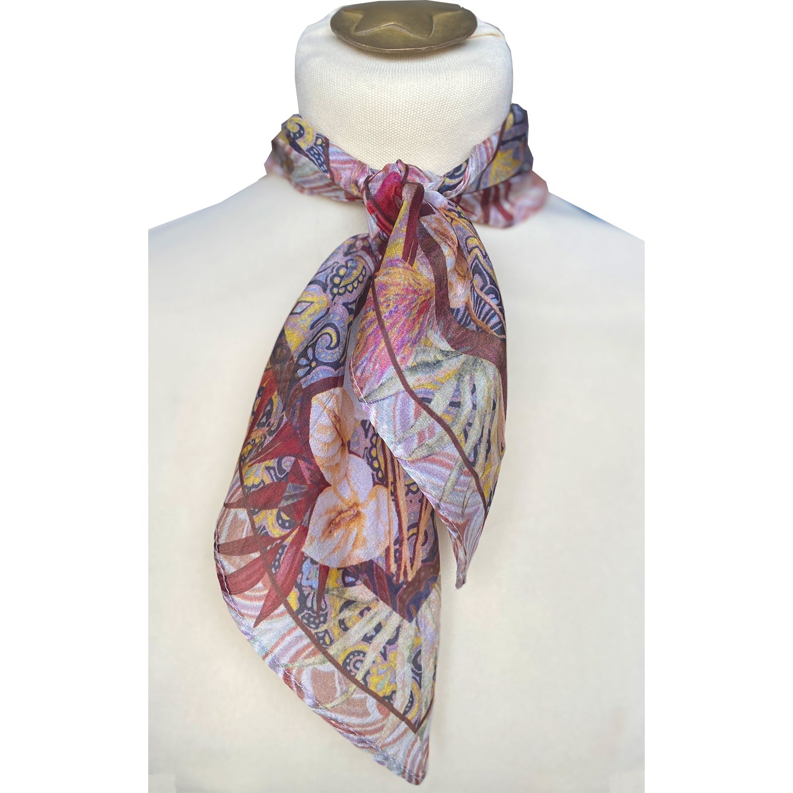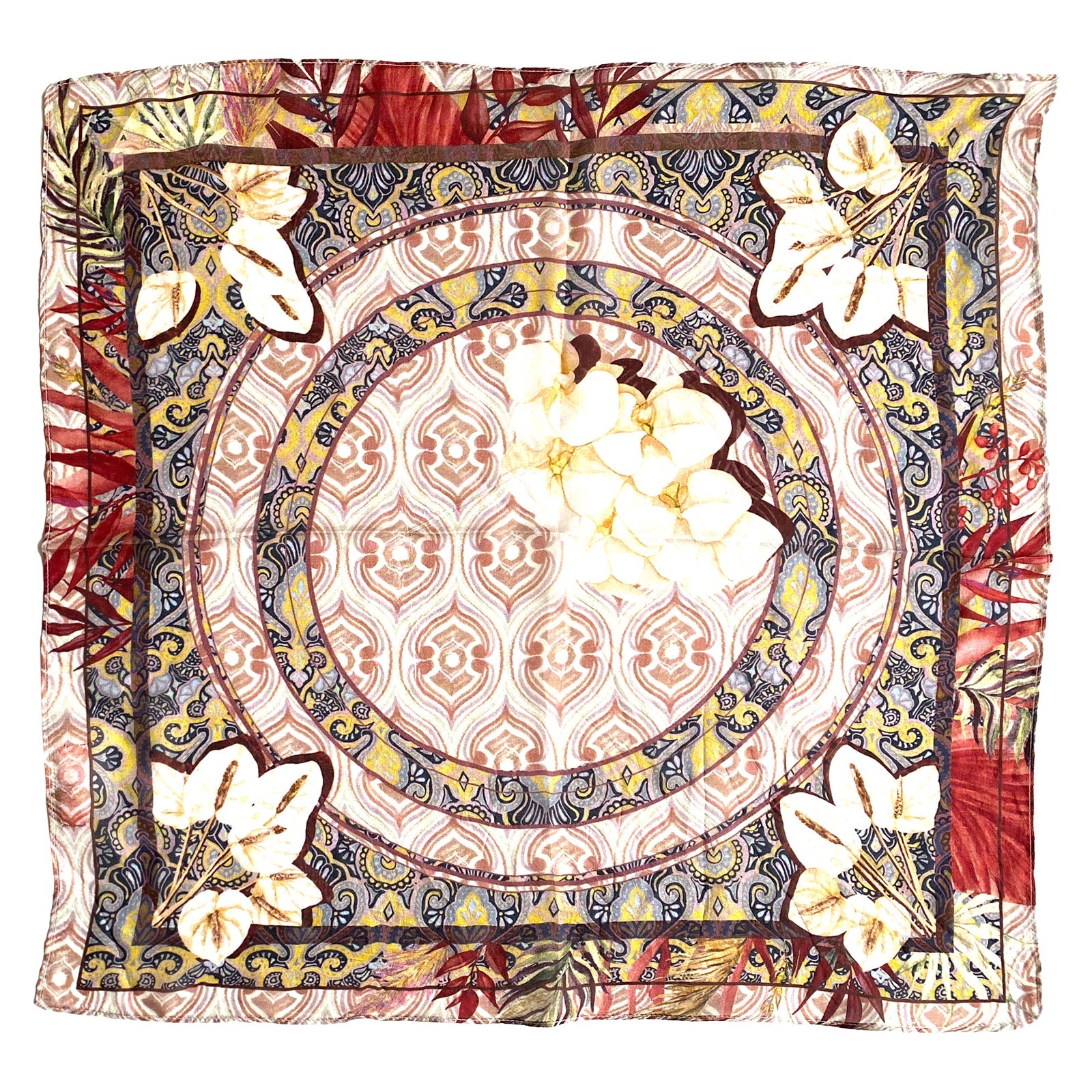 Original-Rubicon Tuch mit Druck aus leichter fliessender Seide in beige und braun Tönen, die Seide schmiegt sich an den Hals, glatt und weich .
