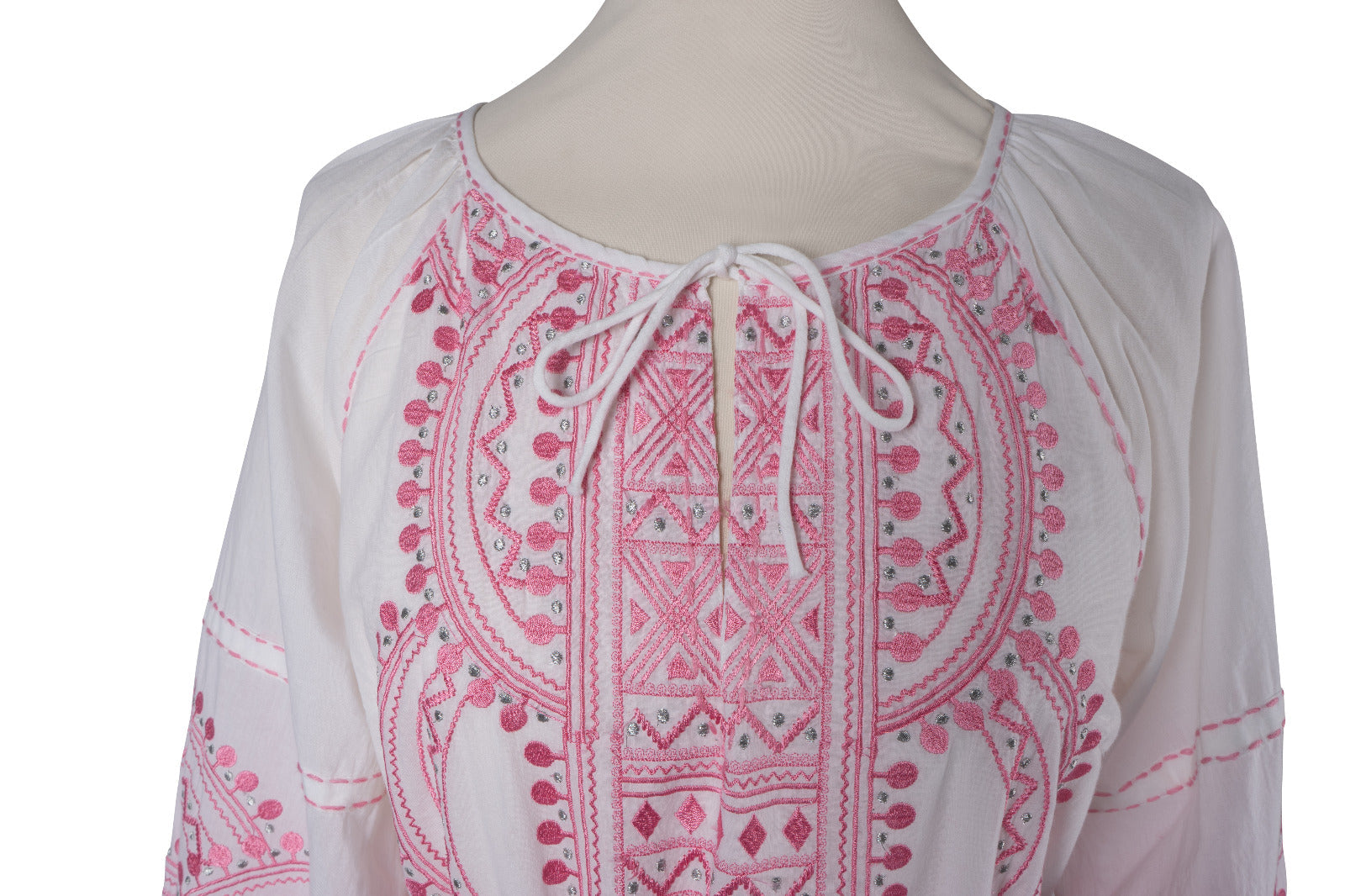 Farbe: 870 weiss mit pinker Stickerei und silbernen Akzenten