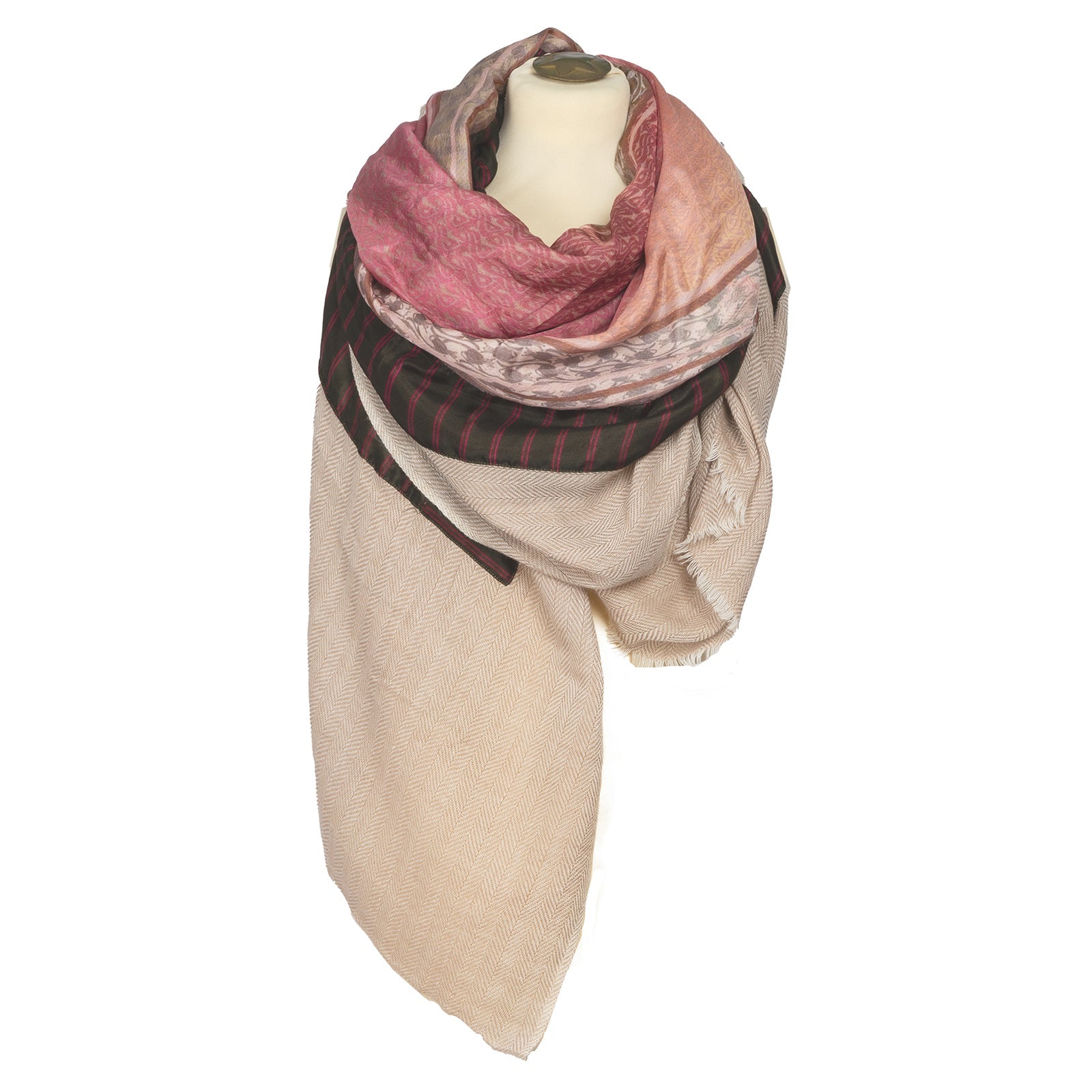 Original-Rubicon Schal mit wunderschönem Seidendruck in sand und nude Tönen, , die Seide schmiegt sich an den Hals, glatt und weich .
