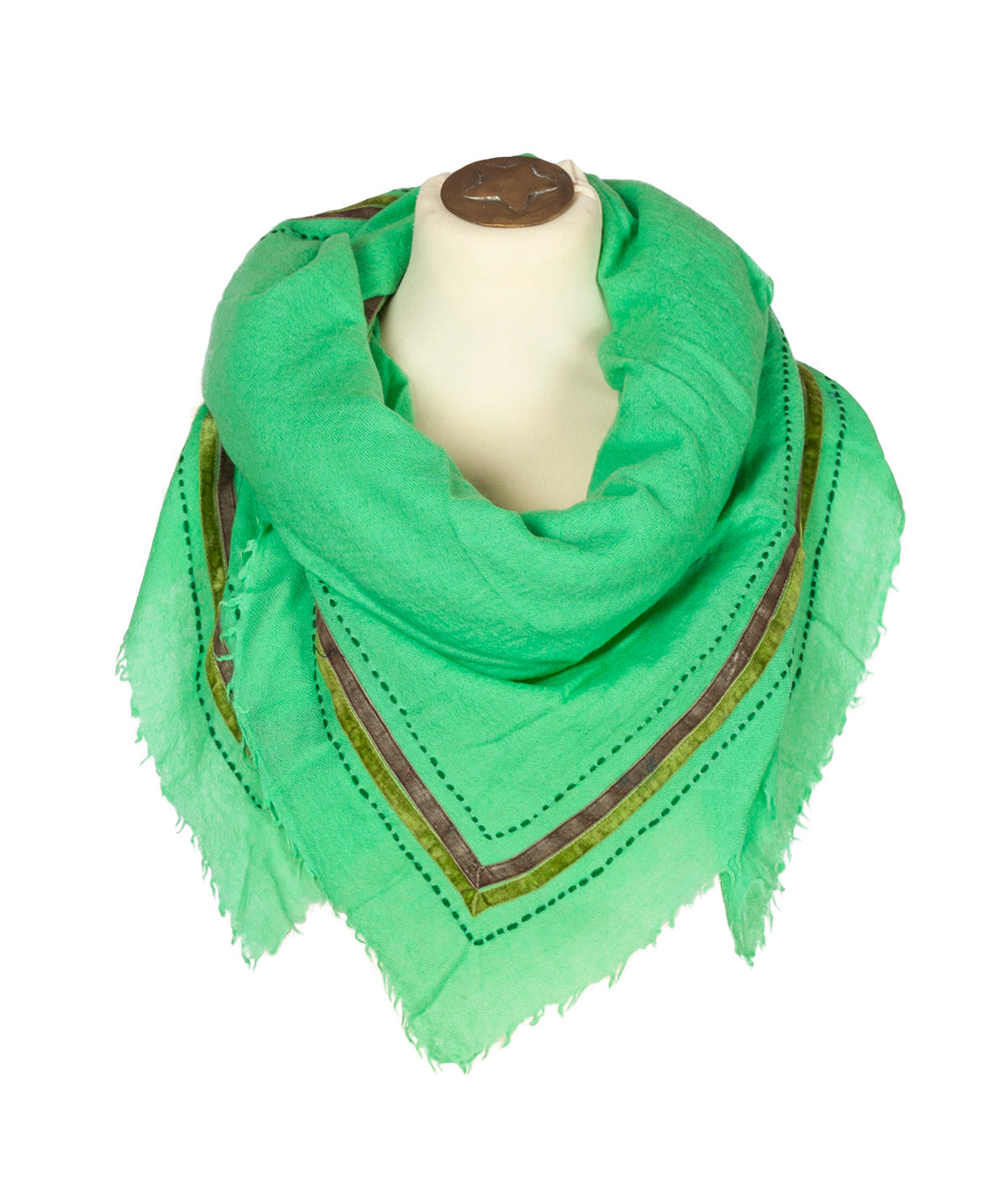 Der Schal stammt aus nachhaltig und fair zertifizierter Produktion.