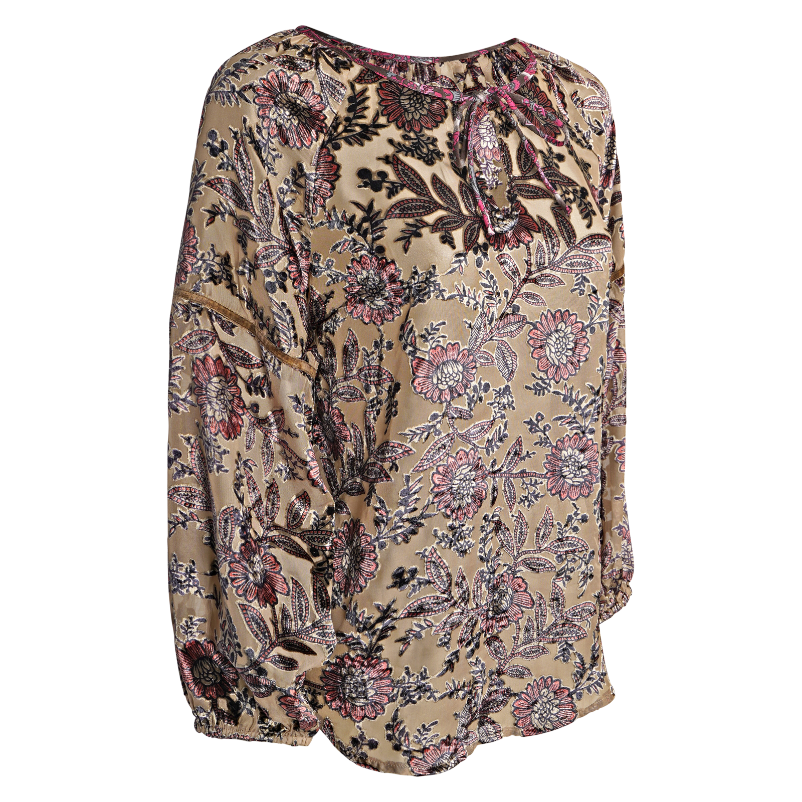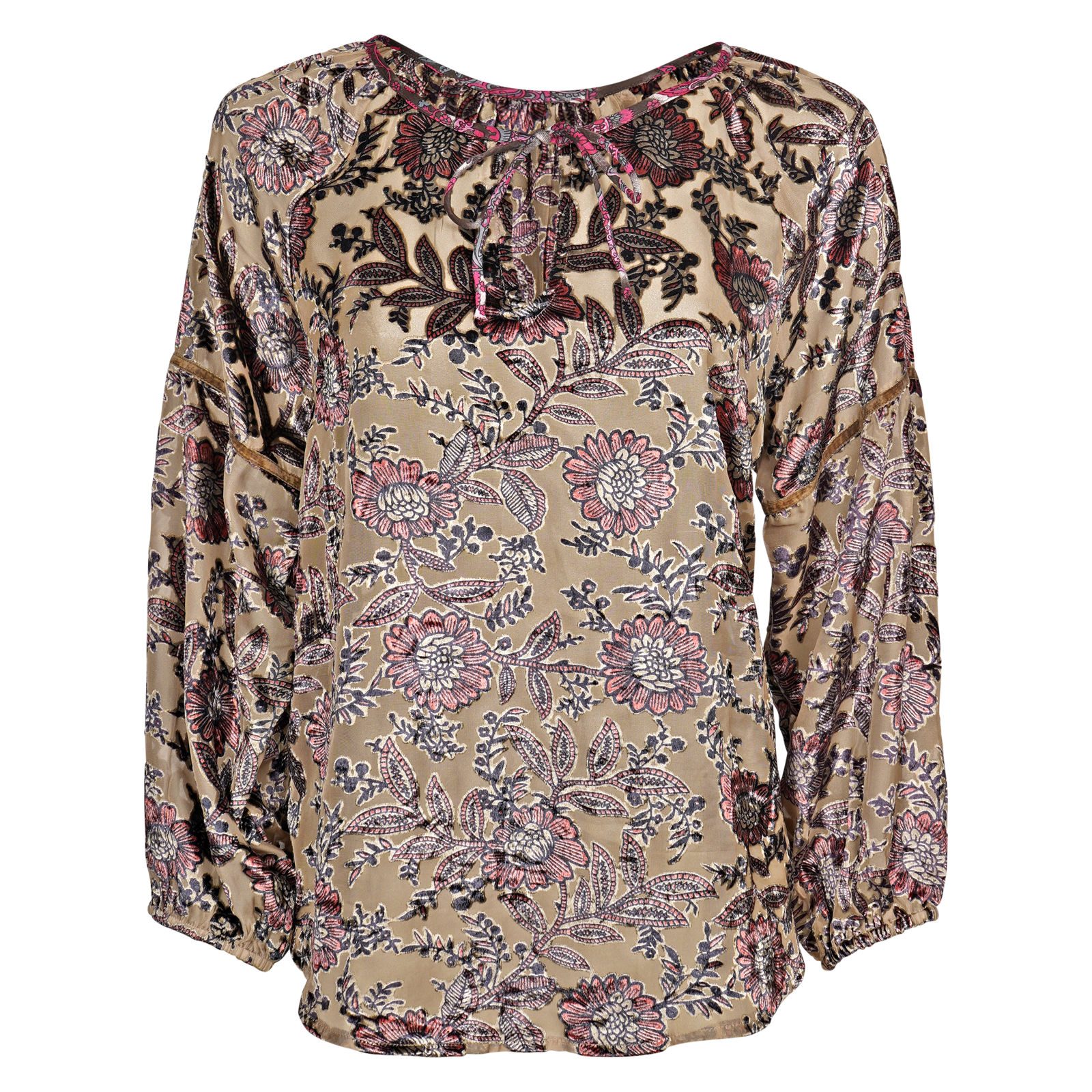RUBICON Viscosesamtbluse mit Blumendruck, lässig geschnitten,