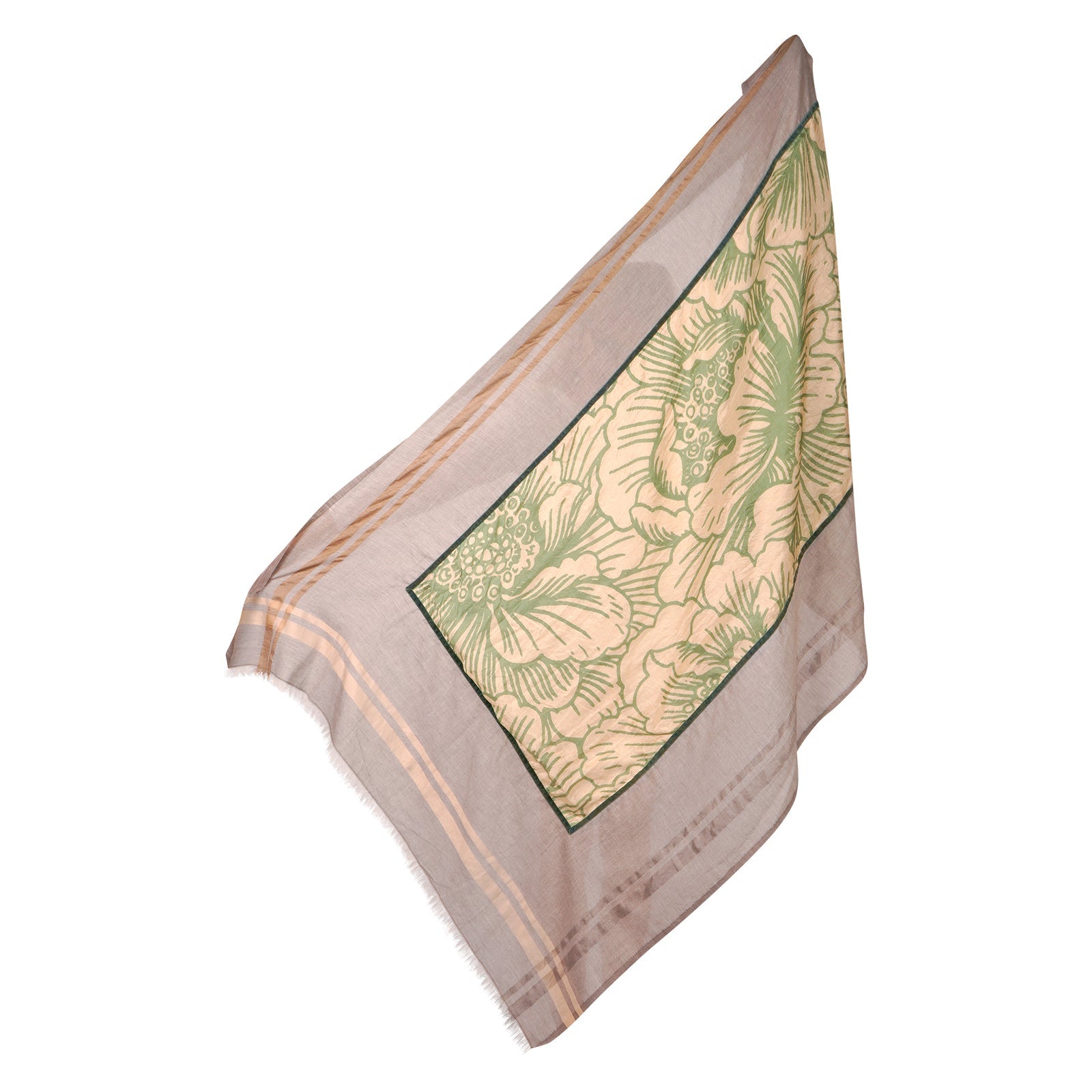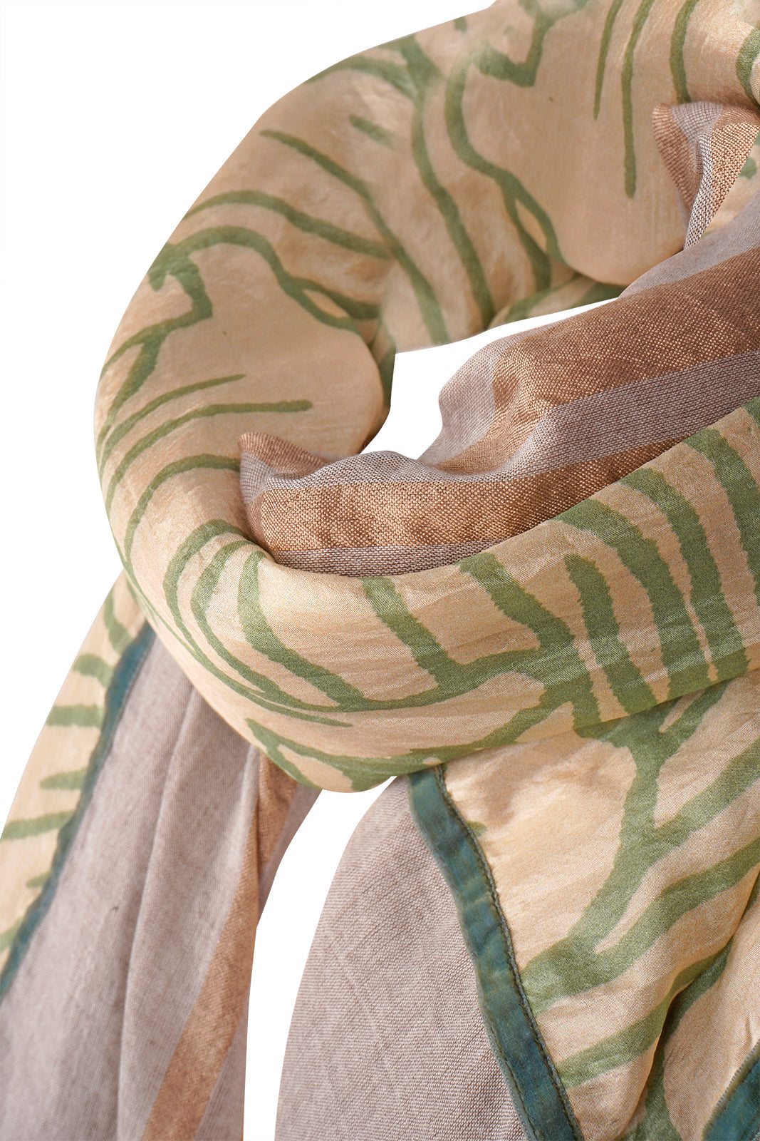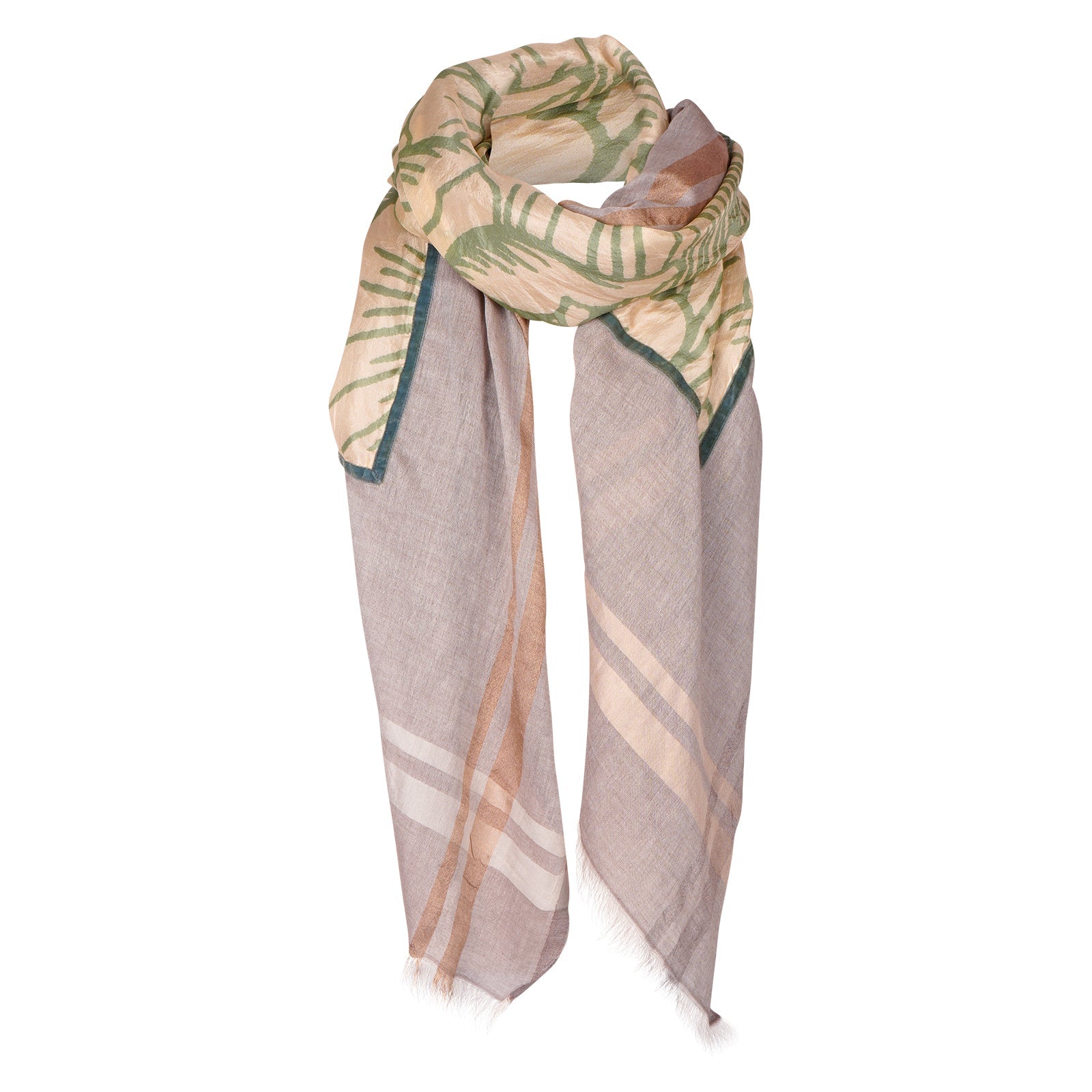 Original RUBICON Damentuch mit Seidendruck auf einem Baumwolltuch eingewebten Seidenstreifen