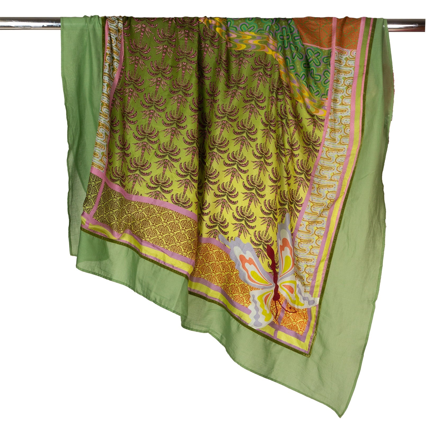 Original RUBICON Damentuch aus Naturmaterialien.Sommertuch aus luftiger Baumwolle und passenden mehrfarbigen Seidendruck.