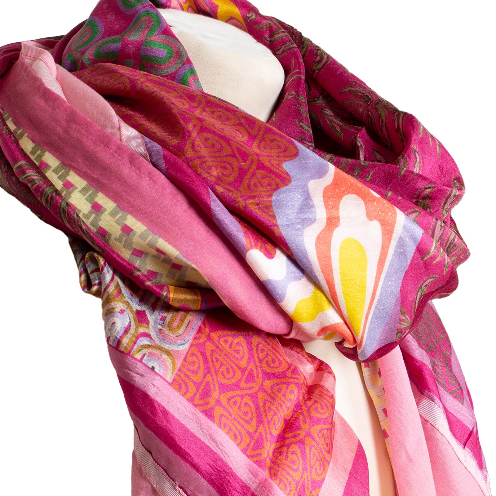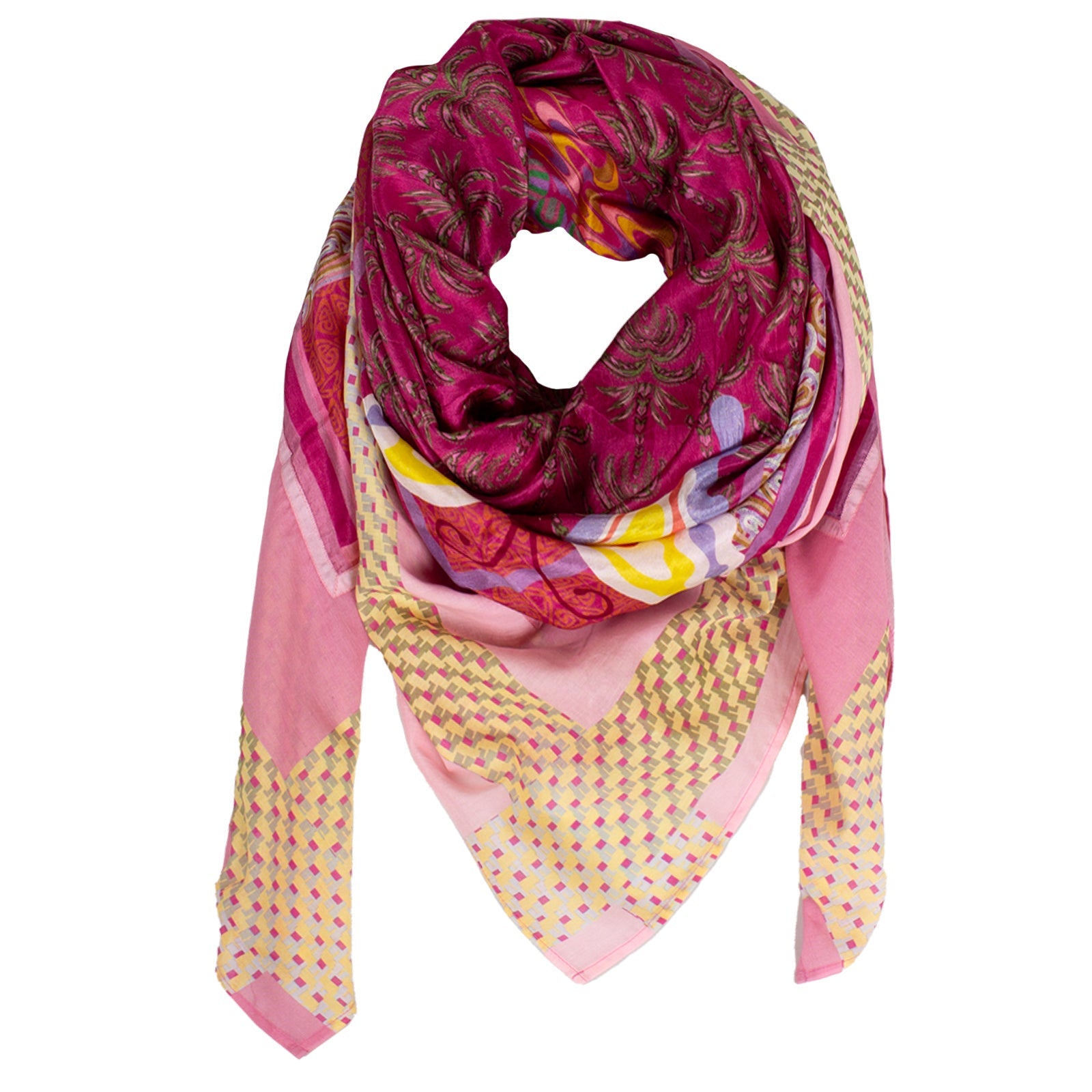 Original RUBICON Damentuch aus Naturmaterialien.Sommertuch aus luftiger Baumwolle mit pinken verlaufenden Druck und passenden multicolor Seidendruck .