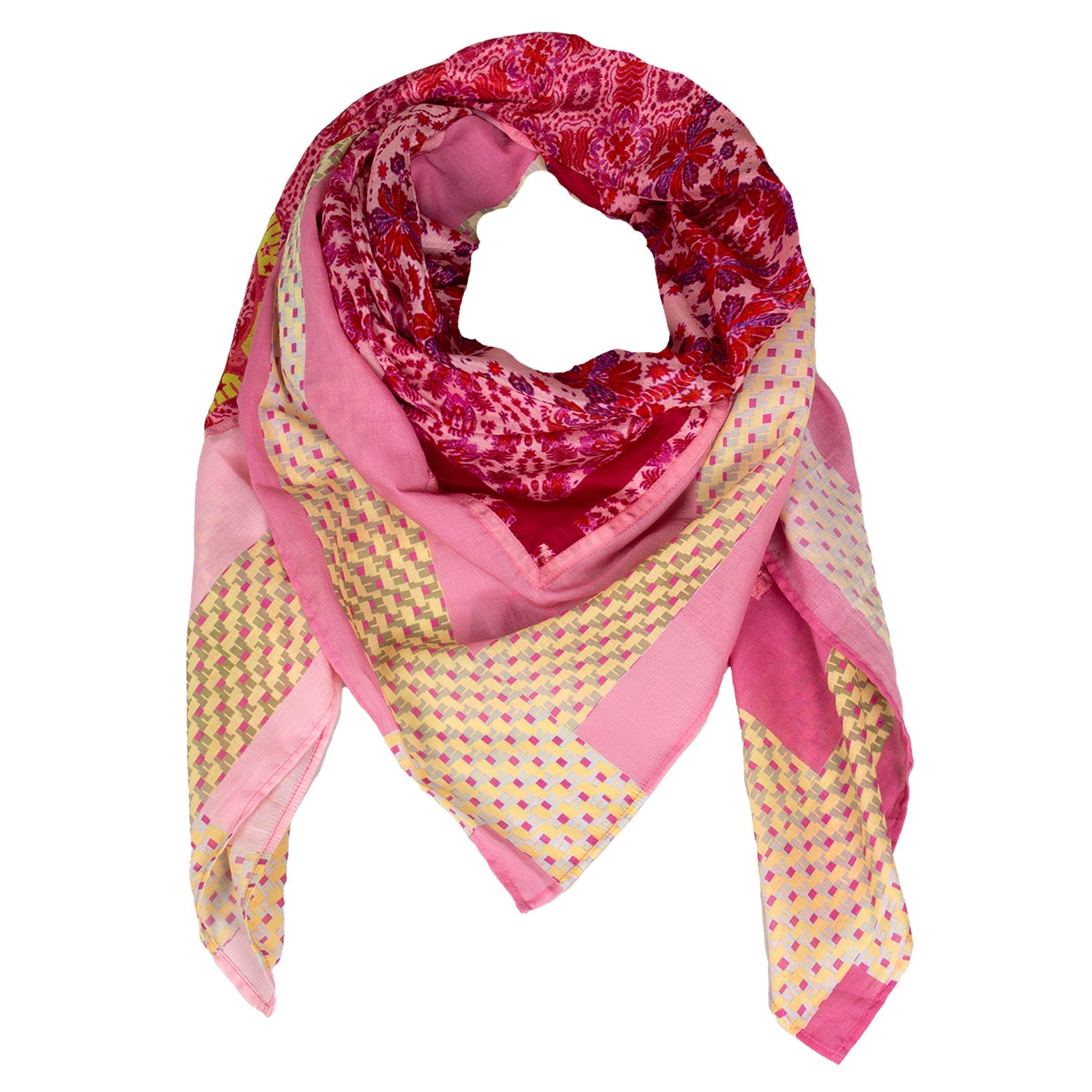 Original RUBICON Damentuch aus Naturmaterialien.Sommertuch aus luftiger Baumwolle mit eingewebtem Seidenrand und passenden mehrfarbigen Seidendruck.