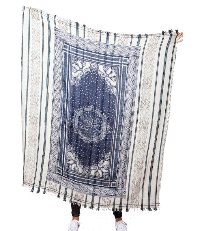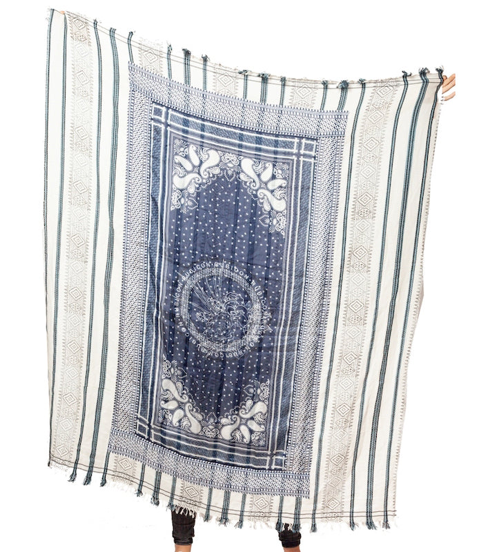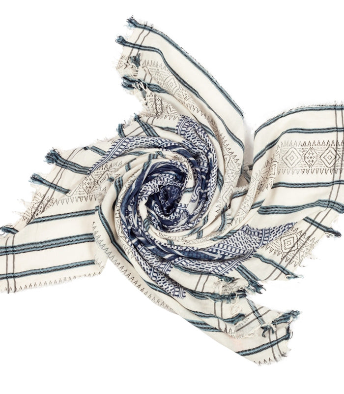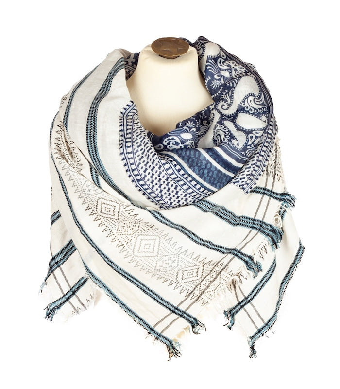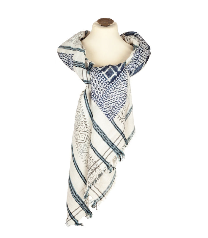 Dieser Style ist ein luftiges Baumwolltuch mit einem wunderschönen Seidendruck in verschiedenen Blautönen. Perfekt für jede Gelegenheit.